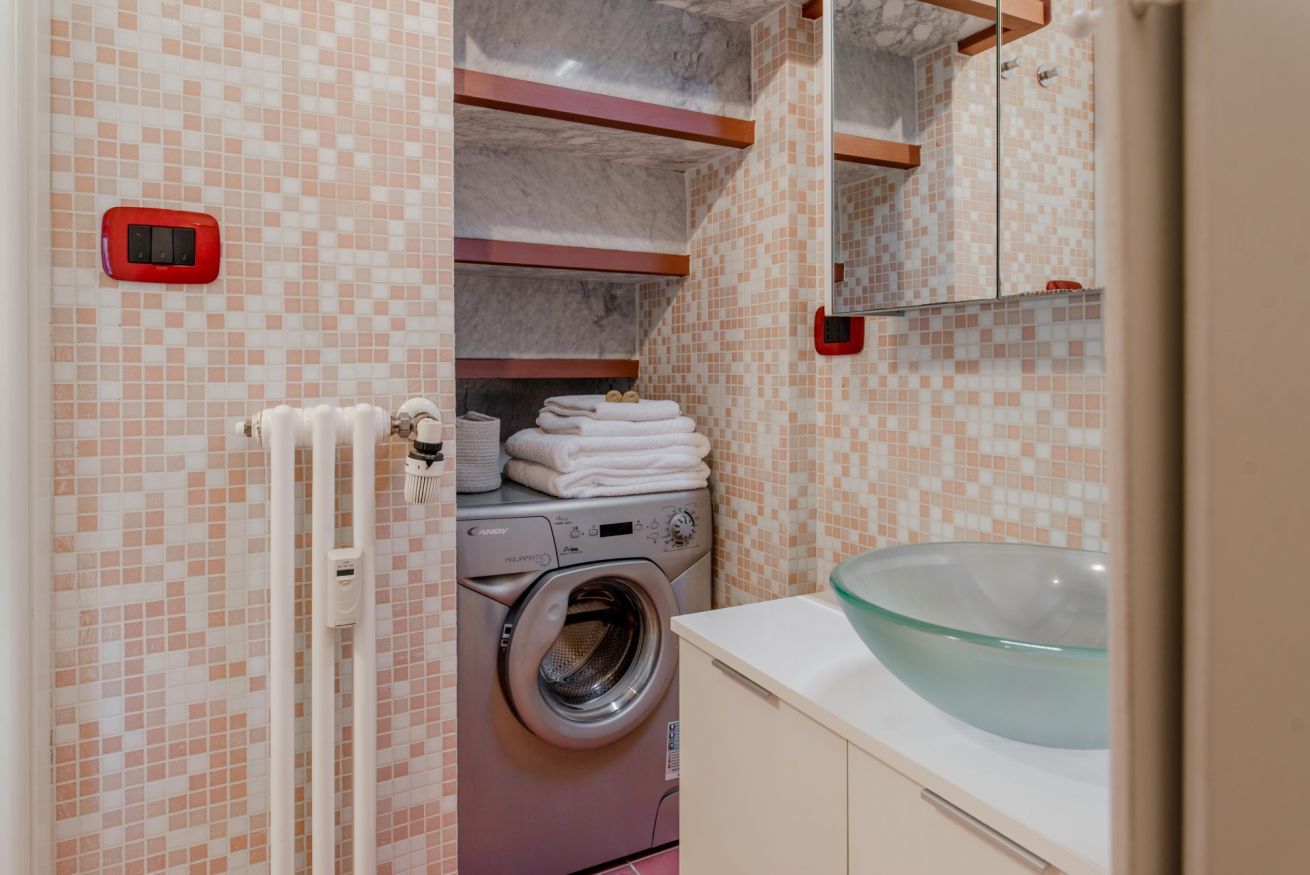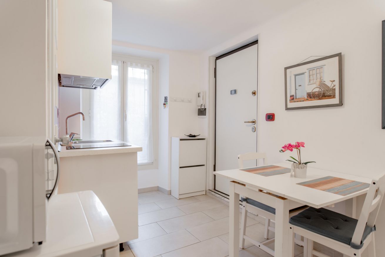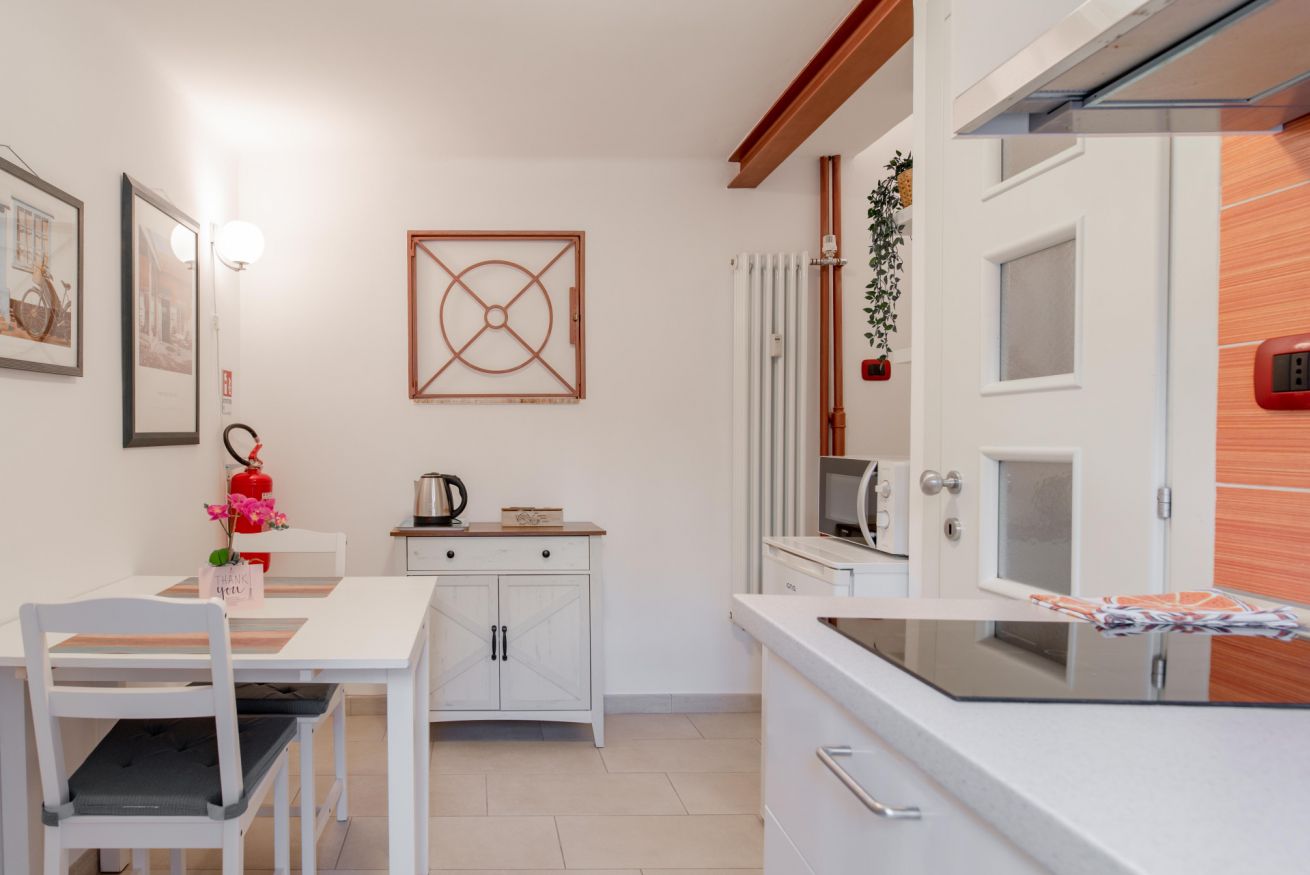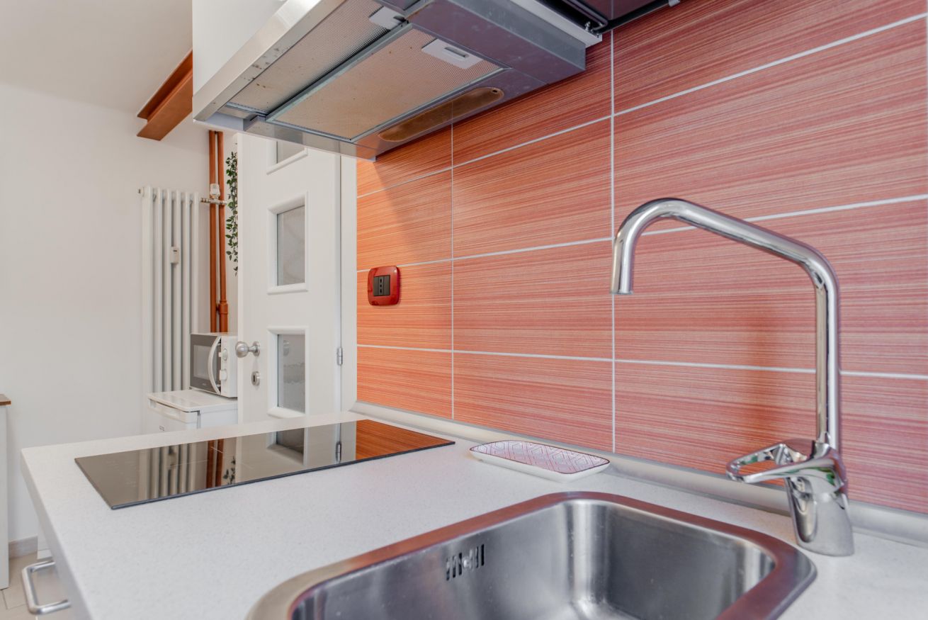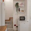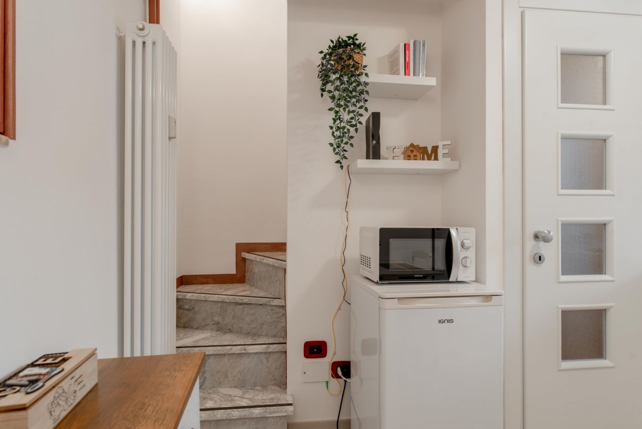 Zona giorno composta da angolo cottura con piano induzione, frigo, bollitore e fornetto mocroonde. Nel bagno è presente la lavatrice.