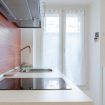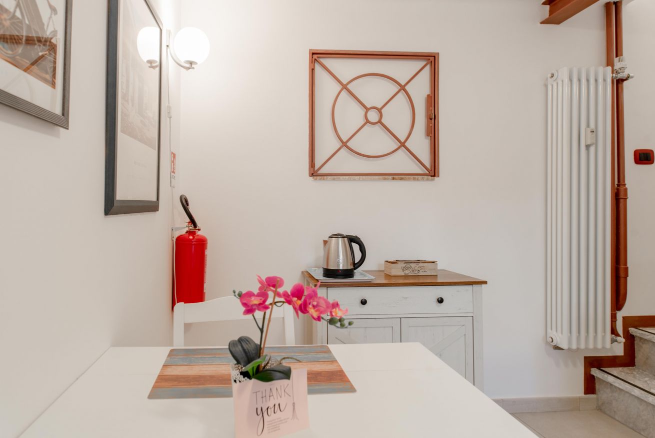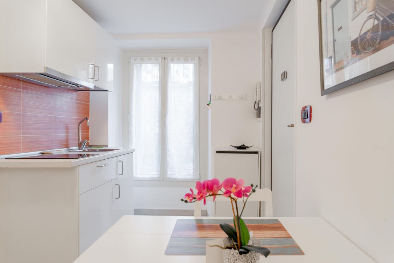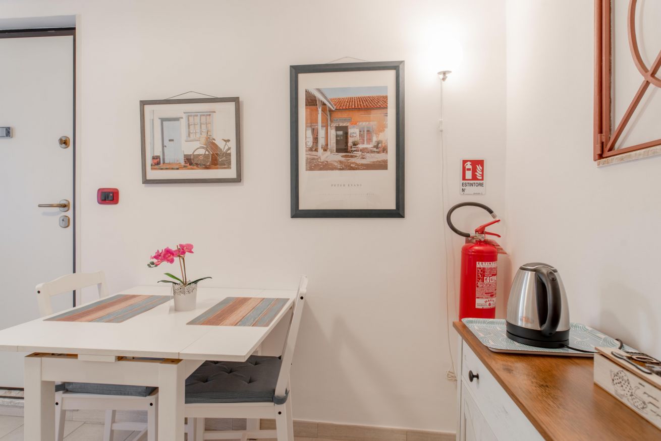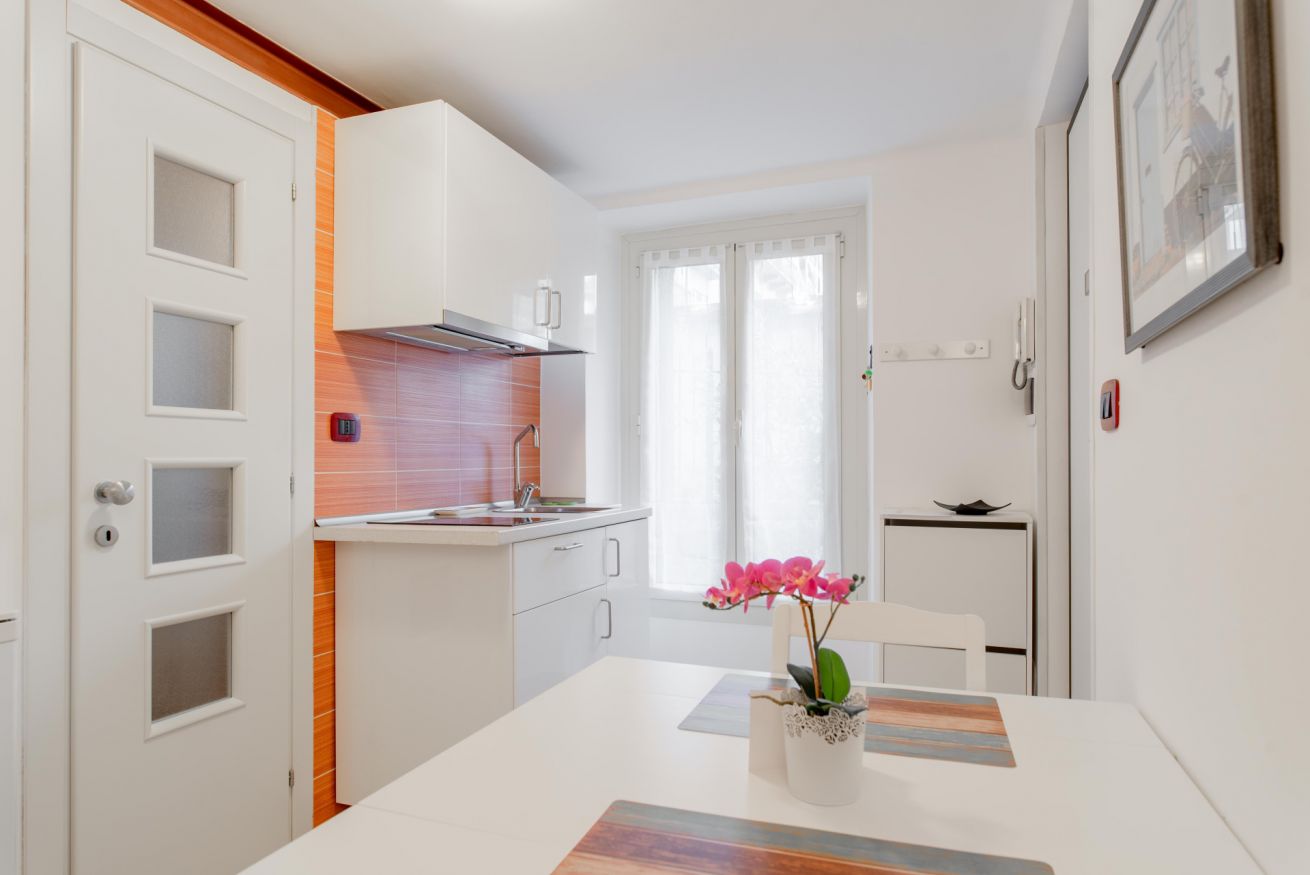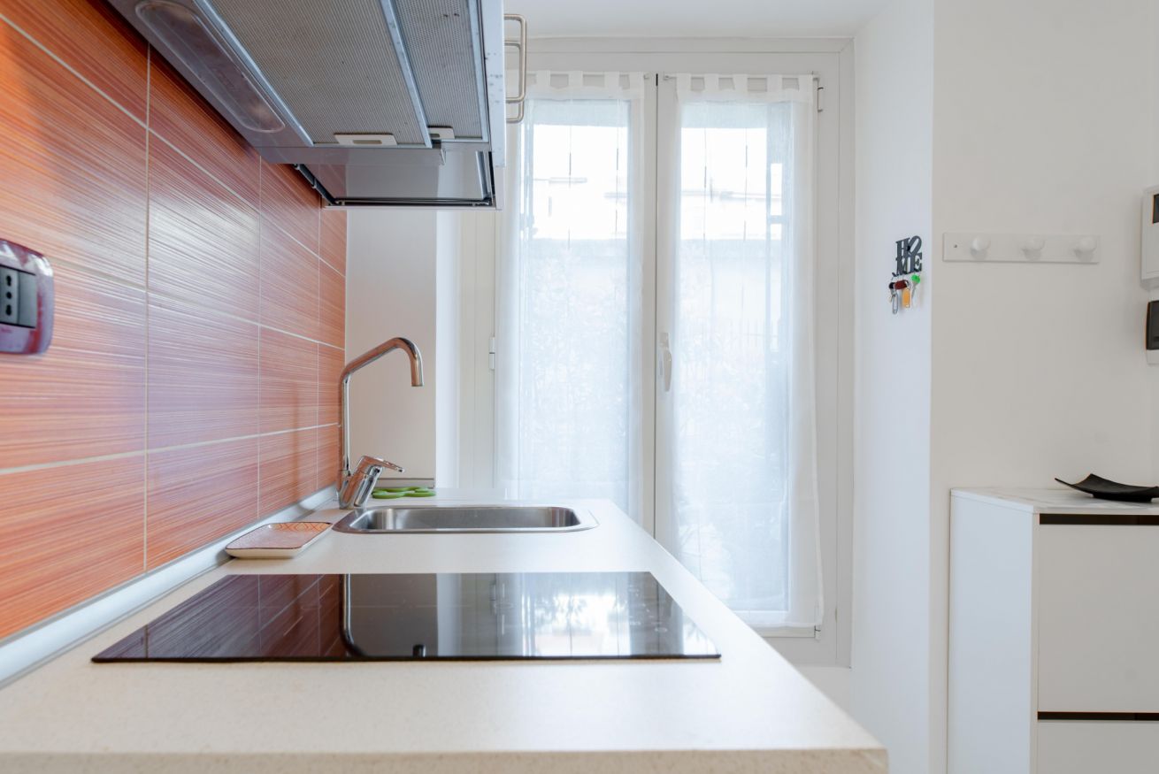 Zona giorno composta da angolo cottura con piano induzione, frigo, bollitore e fornetto mocroonde. Nel bagno è presente la lavatrice.