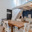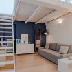 E' composto da una luminosa e grande zona giorno dotata di angolo cottura, tavolo da pranzo in legno, divano letto, tv, camera da letto soppalcata, bagno con bidet e vasca/doccia.